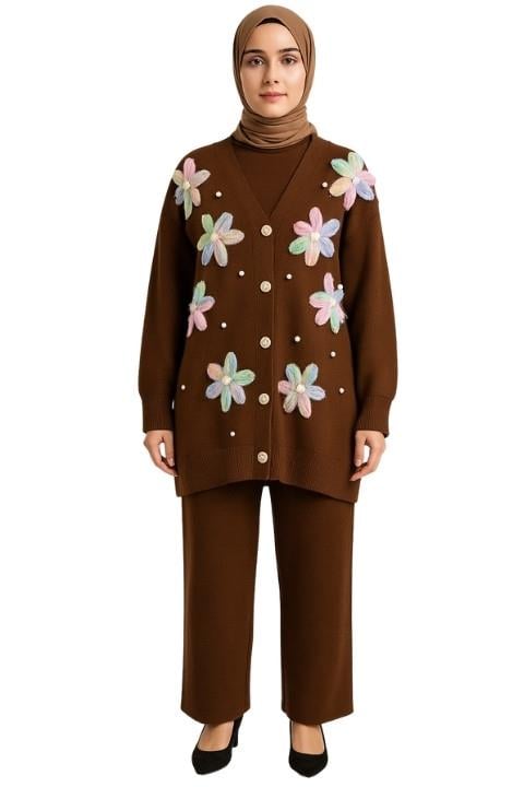 Çiçekli Tunik Takım - Kahverengi (0002187)