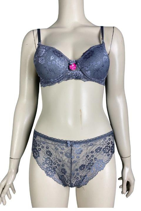 ECEM YILDIZ 3500 DANTELLİ  DOLGULU 2 Lİ SÜTYEN TAKIM  ANTRASİT