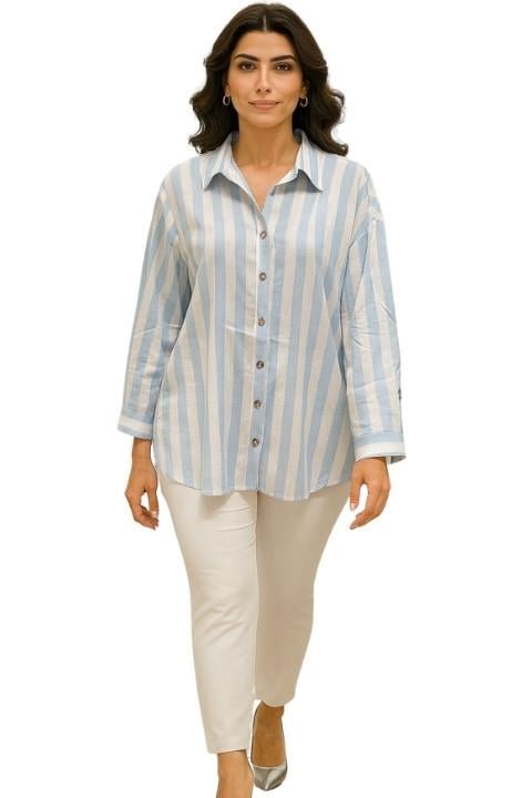 ELİF ÇİZGİLİ KADIN GÖMLEK 1009 KOD:9540273-34 (0000854)