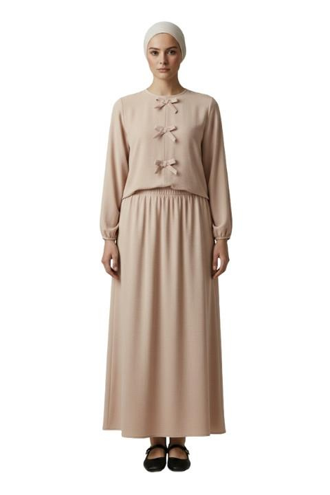 FİYONKLU ETEKLİ KADIN TAKIM-BEJ (0001208)