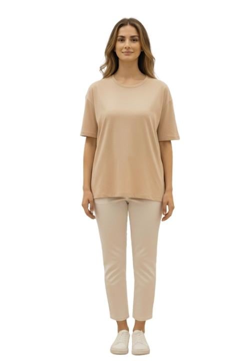 KADIN BİSİKLET YAKA T-SHİRT-BEJ (0001441)