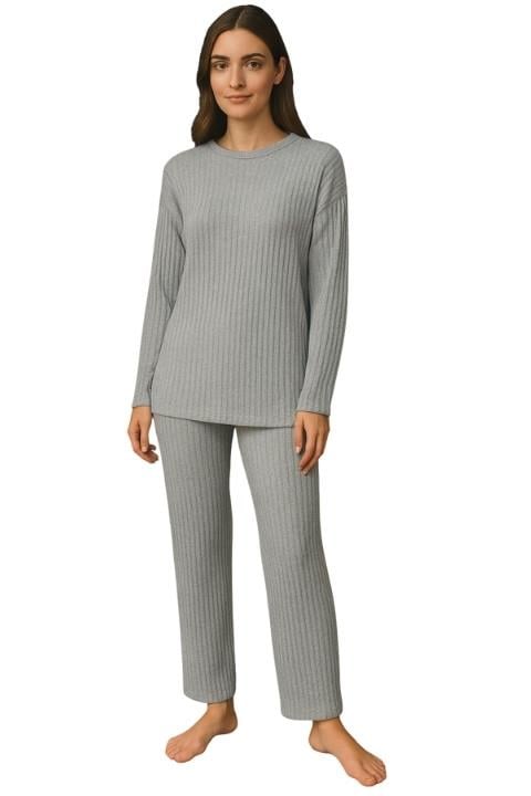 Kadın Fitilli Pijama Takım - Gri (0002283)