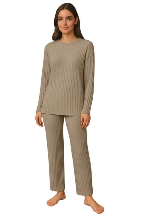 Kadın Fitilli Pijama Takım - Sütlü Kahve (0002281)