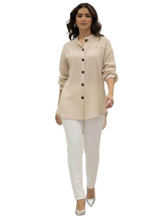 SAMA KADIN KETEN GÖMLEK-BEJ (0001487)