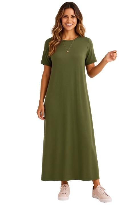 SIFIR YAKA KISA KOL DÜZ PENYE ELBİSE-ASKER YEŞİLİ (0001116)