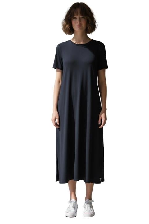 SIFIR YAKA KISA KOL DÜZ PENYE ELBİSE-SİYAH (0001115)
