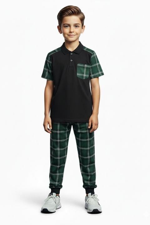 TARIK ERKEK ÇOCUK EKOSE DESEN CEPLİ PENYE PİJAMA (0001929)