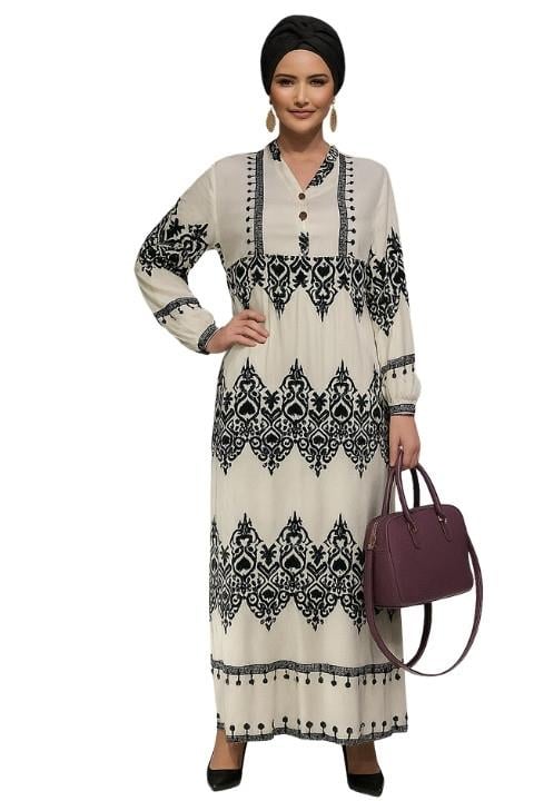 VİSKON DÜĞMELİ DESENLİ ELBİSE (0001198)